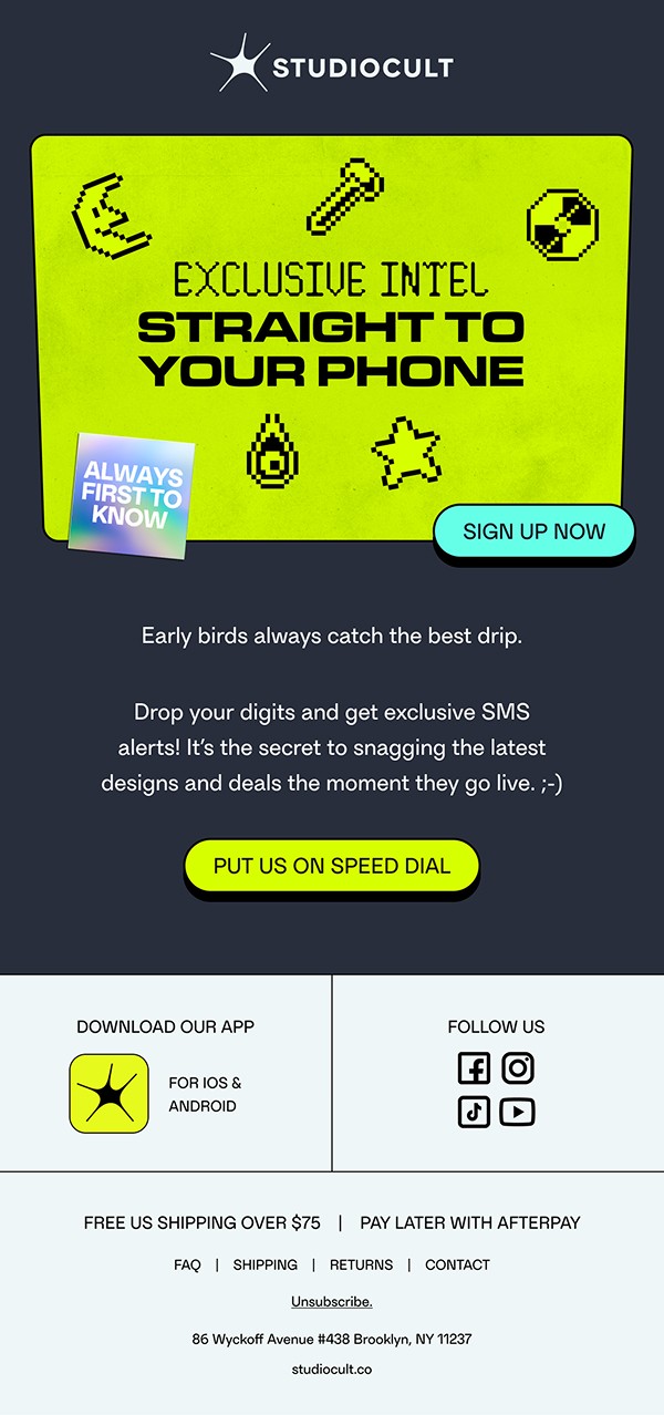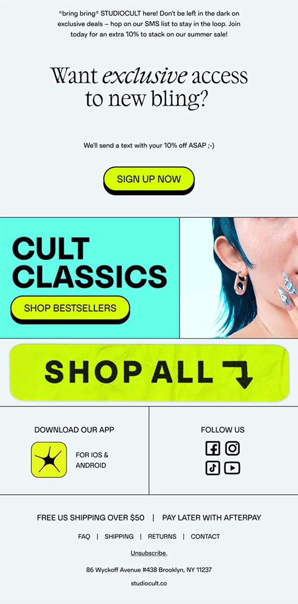 Every email and SMS reflects your brand’s aesthetic and voice.